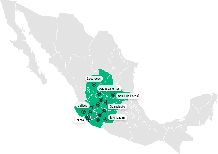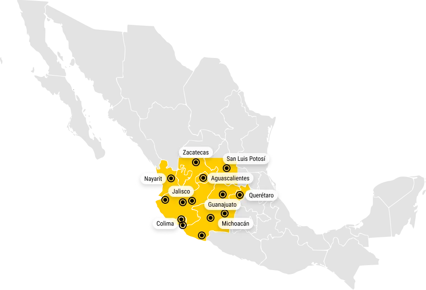 Distribuidor autorizado Caterpillar®️ en la región Centro Occidente de México desde 1974. Cuenta con 14 sucursales dedicadas a ofrecer soluciones en productos y servicios para las industrias de la construcción, agricultura, minería y logística, así como en actividades en rellenos sanitarios, puertos marítimos y de transporte de materiales.